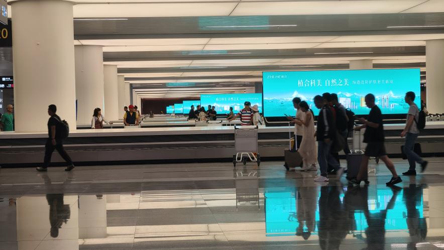 成都天府机场,作为中国西部连通世界的重要航空枢纽,每日承载着巨大的客流量,是展示品牌形象、传递企业价值的黄金点位。植合品牌精准把握这一契机,选择在行李提取这一旅客必经且驻足时间较长的区域,重磅投放欢迎广告,其用心不言自明。