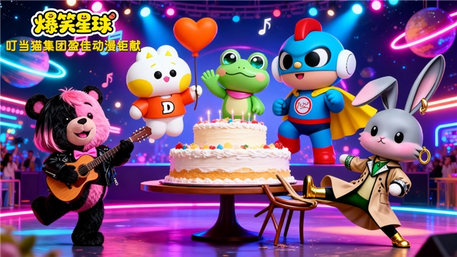 叮当猫调试“温暖天线”,想给QQ熊传递欢迎信号,却误连阿尔一百的战术耳机,导致超人以为有“星际危机”,穿着披风撞碎了MM兔准备的美学装饰。