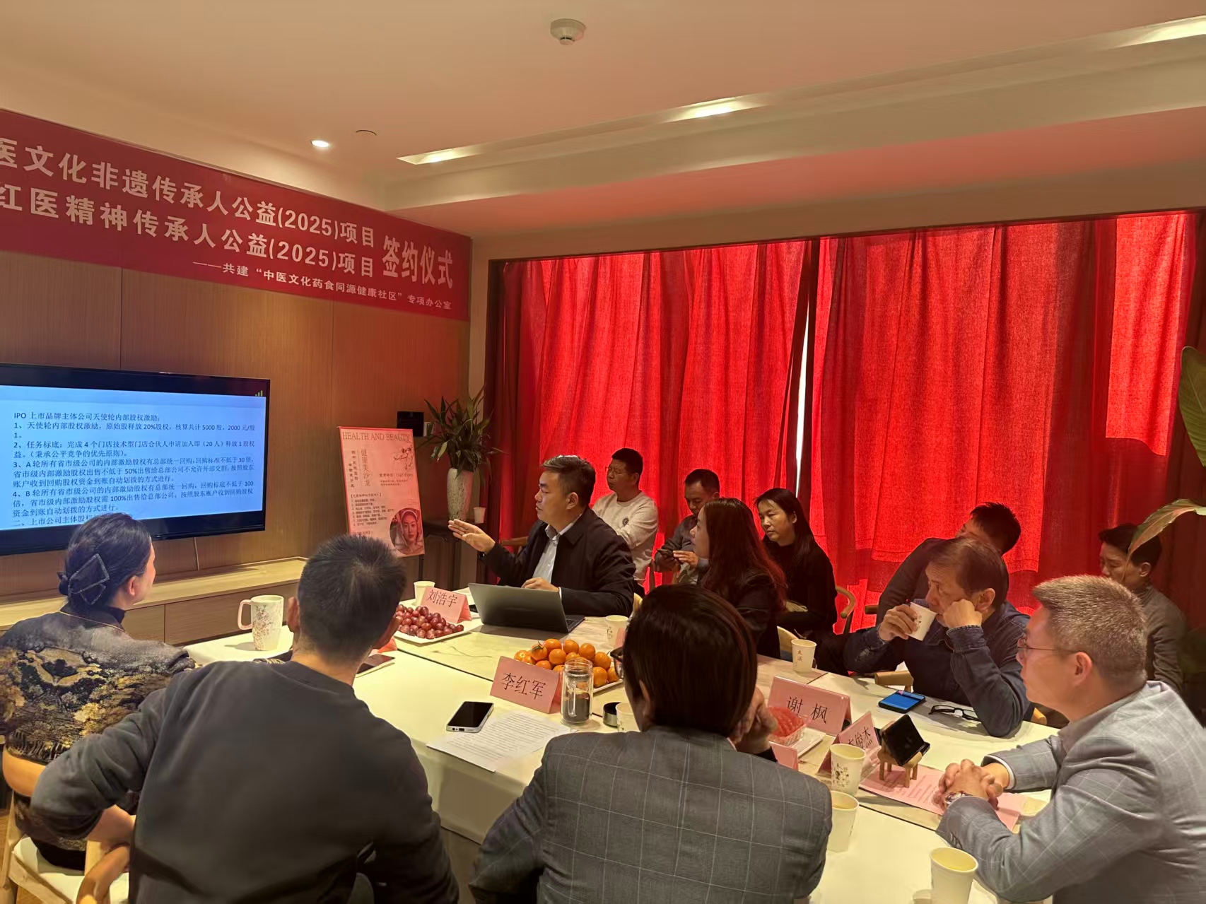 活动由“中医文化药食同源健康社区”产学研专项办公室主办,武汉太溪新中医协办,专项办公室主任刘浩宇、副主任邓碧玲,太溪新中医院长孙芳、副院长李俊杰、副院长李红军等代表出席。王丽、徐增利、李秋磊等嘉宾共同见证项目启动。
