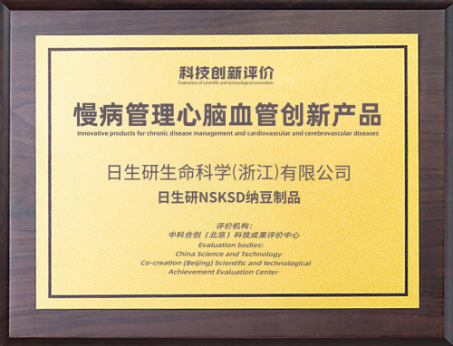 据悉,该奖项由中华人民共和国科学技术部认证机构中科合创(北京)科技成果评价中心颁发,评审专家委员会根据NSKSD纳豆激酶在中国完成的多项人体临床研究成果给予了高度评价。其中包括在杭州市第一人民医院完成的《NSKSD纳豆激酶在心血管疾病高危人群应用疗效的临床研究》,在浙江大学医学院附属第二医院开展的RCT随机对照试验《NSKSD纳豆激酶改善无症状性颅内/颈动脉狭窄患者脑血流及认知功能的临床研究》。这两项临床循证研究,分别证实了其改善血黏度、血小板聚集率、D-二聚体、脑血流、颈动脉斑块、中膜增厚和血管性认知功能障碍以及睡眠质量等功能,为NSKSD纳豆制品在心脑血管慢病管理中的精准营养干预提供了科学依据和应用指引。