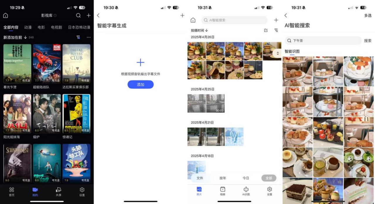 其中,极影视支持智能刮削海报、生成AI字幕,支持多音轨切换与杜比视界解码,还能通过评分、年代、类型等多维度筛选影片,自动归档系列作品,轻松打造私人影音库;极相册则凭借AI识图、自然语言检索、地理位置分类等功能,让海量照片管理井然有序,新增的AI选片与影像处理工具,更能智能筛选优质照片、修复老照片,为家庭记忆留存提供全方位保障。