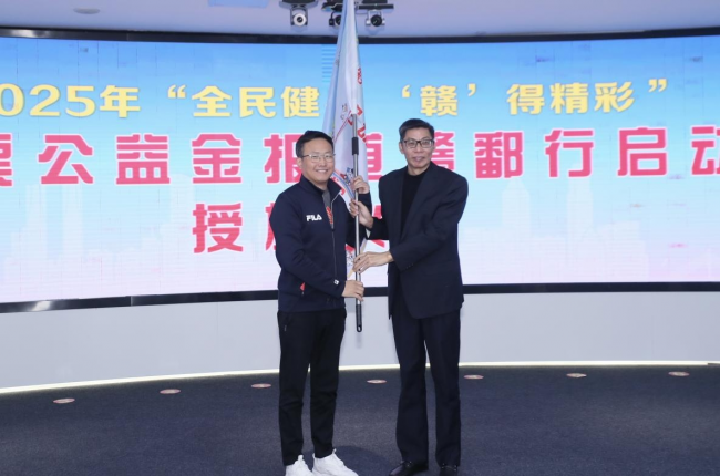 媒体代表江西日报记者李征郑重接过象征着责任与使命的旗帜并表示,能够连续多年参与“赣鄱行”活动,深感使命光荣、责任重大。过去五年来,我们媒体的足迹遍布赣鄱大地,用笔和镜头记录下体彩公益金在推动全民健身、服务社会民生方面的生动实践与丰硕成果。未来,我们将继续以敏锐的视角和深情的笔触,用心用情讲好每一分公益金背后的温暖故事,让其“来之于民、用之于民”的宗旨更加深入人心,为助力健康江西建设贡献媒体的智慧与力量。