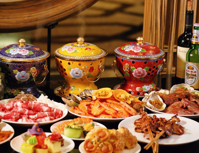 这方铜锅的加入,与餐厅原有的环球美食版图相得益彰。您可在海鲜刺身区领略三文鱼、大虾的冰润清甜;在烤肉区感受油脂迸发的炙热快感;亦可品味北京烤鸭的酥香与粤式烧腊的蜜意。从印度咖喱的浓郁奔放,到特色砂锅的家常暖意,最后以一口丝滑的慕斯蛋糕或提拉米苏圆满收尾。此刻,东西方风味在舌尖共舞,传统与时尚在此刻和谐共鸣。