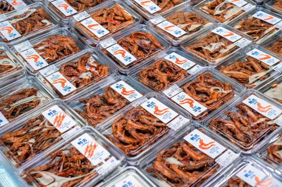 在消费升级与健康意识觉醒的当下,金粒门敏锐捕捉到消费者对"即时新鲜"的需求。其核心品类涵盖现烤猪肉脯(保质期3天)、麻辣鲜食(保质期48小时)、原液鲜果茶(现制现售)等短保产品,通过"基地直采+中央厨房+门店现制"的供应链设计,实现从原料采摘到终端销售的全链条控鲜。同时,金粒门充分把握当代人对健康食品的追求,放弃各式各样的添加剂、防腐剂,保持食材本身的味道,还原零食更新鲜健康的口感。