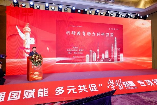 11月23日,“强国赋能 多元共促——‘学习强国’专项领域协同发展论坛”在北京举办。中宣部原副部长、中央文明办原主任、中国文联原党组书记、原副主席,现任中国关心下一代工作委员会常务副主任胡振民出席论坛。中央宣传部宣传舆情研究中心党委书记、主任,“学习强国”学习平台总编辑农涛;中国老龄产业协会执行会长,北京市民政局原局长吴世民;北京广播电视台副台长彭司海等同志先后致辞。国高教育集团董事长周传虎受邀与会并以《科研教育助力科研强国》为题做专题报告。