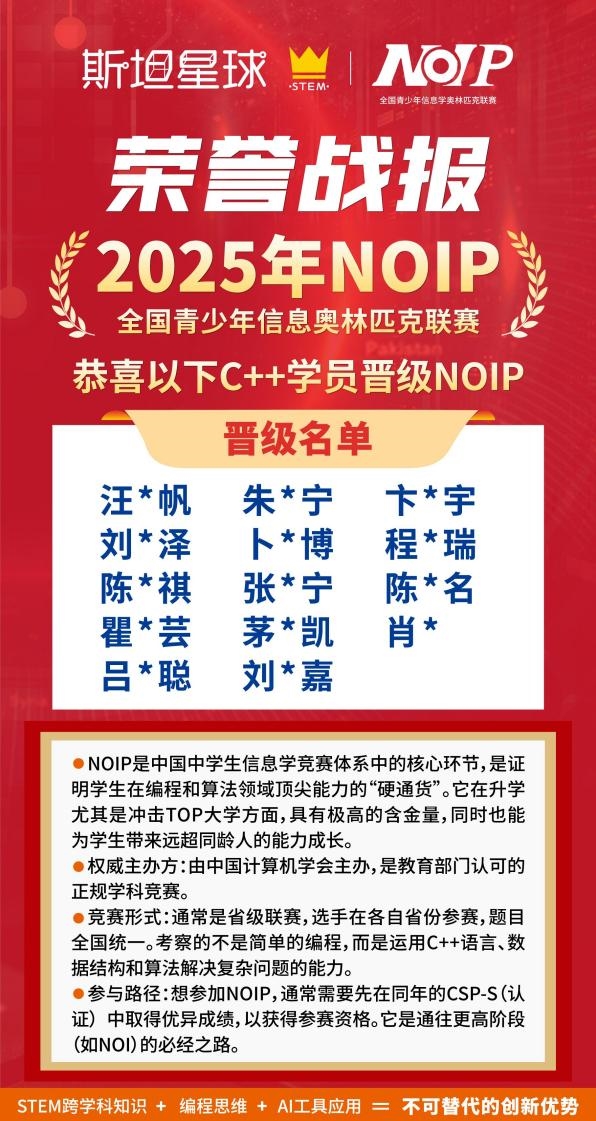近年来,信息学奥赛(信奥)凭借sheng学优势跻身热门赛道,作为信奥核心编程语言的C++,更掀起青少年学习热潮在众多品牌中,斯坦星球以硬核实力与亮眼战绩崭露头角...