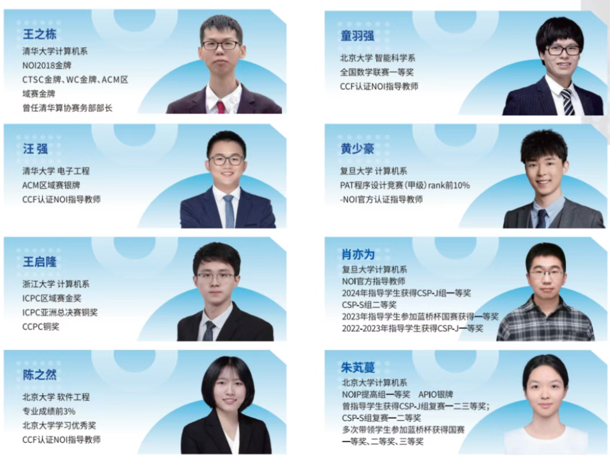 师资是核心竞争力!斯坦星球信奥C++授课与研发团队堪称“学霸级天团”:授课老师均为信奥省赛冠军、全国联赛获奖者、清北保送生等,拥有亲身备赛参赛的实战经验,能精准规避备赛陷阱;