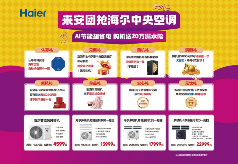展会期间,海尔中央空调将推出多项购机优惠与专属服务,为消费者提供从产品到安装的全周期安心保障。海尔始终以技术创新与服务升级为核心,致力于为郑州家庭提供“快速、节能、智能、健康”的一站式采暖解决方案。