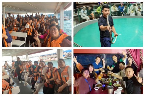 第二天,大家探访了毒蛇研究中心,近距离了解泰国特色毒蛇文化与相关健康知识。在四方水上市场,大家乘一叶扁舟,穿梭于错落有致的商铺之间,品尝地道泰式美食,选购特色手信,沉浸式体验水上贸易的乐趣。夜幕降临,东方公主号游船上的狂欢派对如期而至,歌声、笑声、欢呼声交织在一起,成为旅程中难忘的回忆。