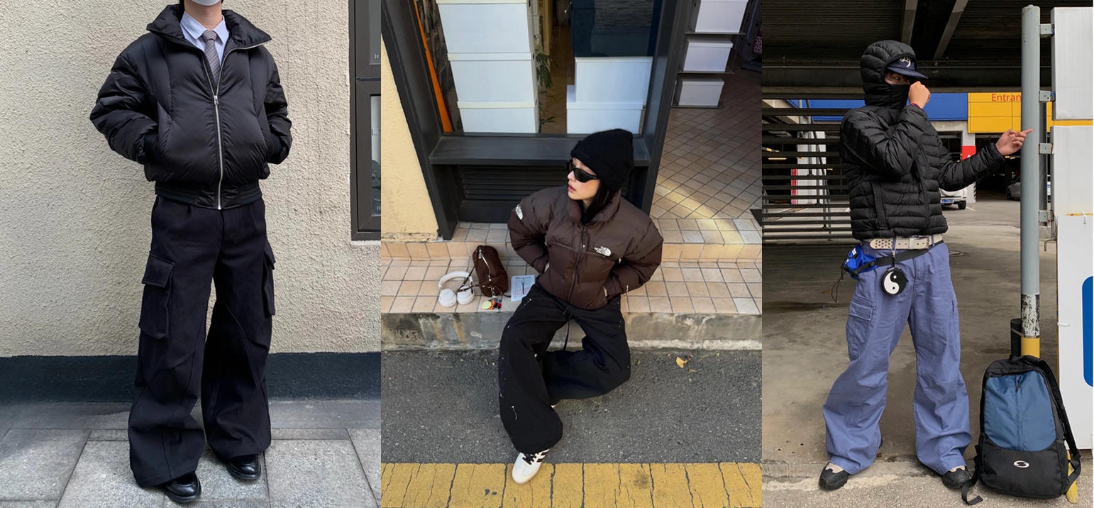 而羽绒服+工装裤的组合,刚好契合了这种“不随流”的风格:不用费心凑搭,一套就能兼顾保暖与造型感,不管是日常通勤、探店打卡,还是同风格情侣出街,都能轻松穿出高阶时髦感。