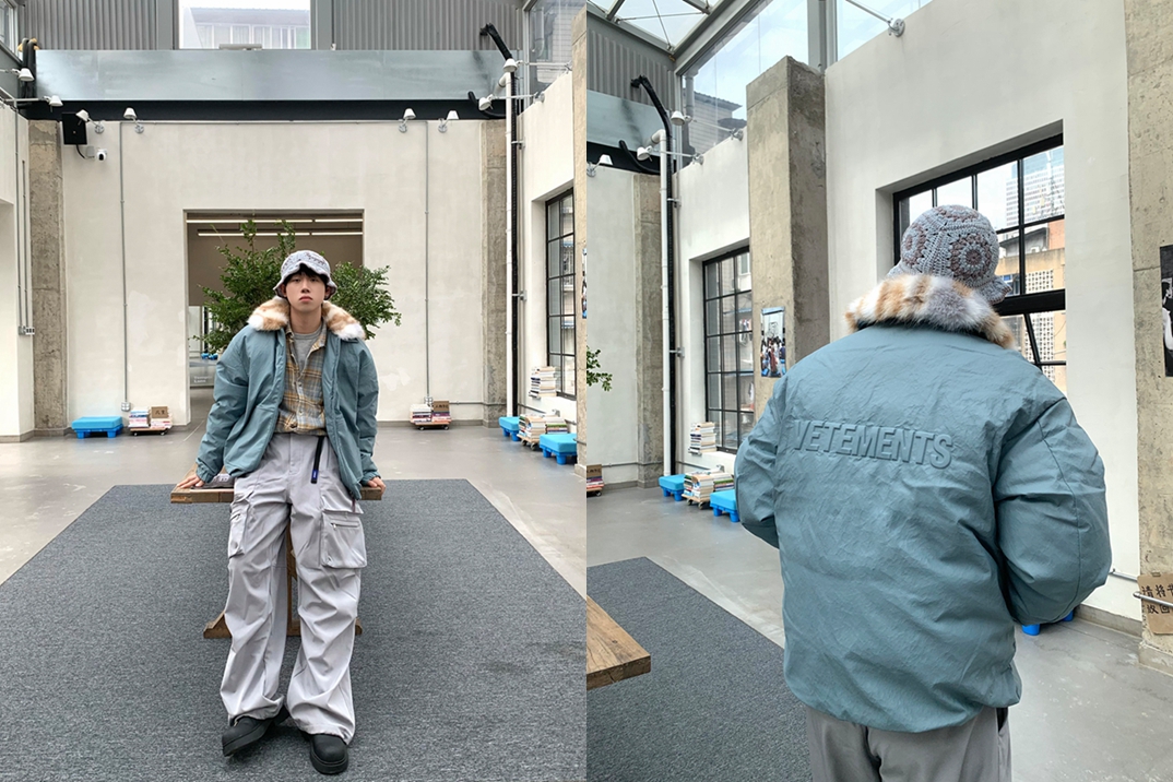 冬天想穿得暖又不臃肿?VETEMENTS热感皮羽绒+工装裤的组合就是最优解。