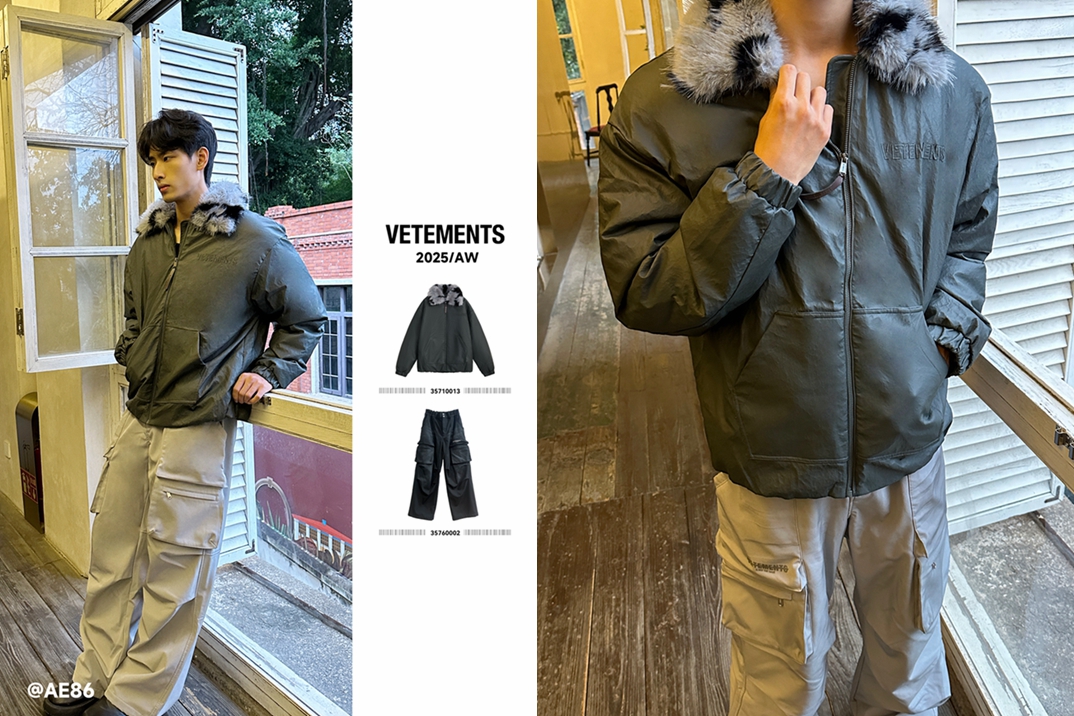 这个冬天想跳出厚重臃肿的穿搭怪圈,羽绒服+工装裤的组合值得一试,VETEMENTS 的设计更是把这种思路的优势直接落地,轻松拿捏冬日潮人范儿。