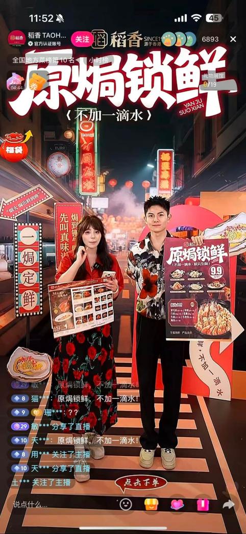 活动深入挖掘湾区本土生活特色,结合中秋佳节与“双十一”节点,通过抖音本地生活的“深圳烟火气”主题直播,邀请港台艺人线上“打CALL”。其中,郑浩南在“专场福利节”直播中为广式月饼“代言”,相关内容全网曝光量超30万,有效带动节日消费氛围;粤菜老品牌“稻香酒家”以文化赋能直播,连续推出“原焗锁鲜”主题专场,实现GMV突破380万元;新锐品牌“街边铁桶”创新打造“派对式”直播间,首场曝光量超80万次,登顶本地美食热度榜;华润万家围绕“中秋送礼·就来万家”等主题开展近50场特色直播,销量突破百万件;卡士乳业联合超60位达人展开多平台推广,总销售额近千万元。