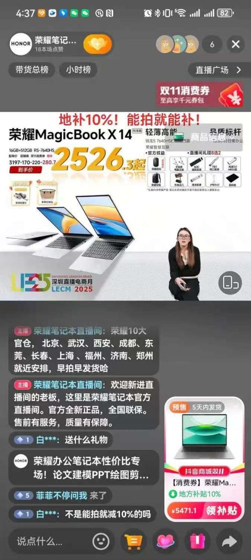 据第三方大数据统计,活动期间,全市参与带货主播超万人,累计直播超70万场,上架商品数量超118万个,吸引超51亿人次观看,实现网络零售额超465亿元。活动汇聚抖音、淘天、快手、Wildberries、阿里速卖通(西班牙)、TikTok Shop等主流平台,联动“猫哥评测”“小小莎老师”“水贝巧玲黄金”“梦如珠宝”等一批具有影响力的主播达人,助力华为、荣耀、大疆、齐心集团、全棉时代、卡士乳业、八马茶业、百丽、蕉下、华润万家、创维电子、利亚德等知名品牌拓展直播赛道,带动数码产品、黄金珠宝、服装鞋帽、食品家居等全品类商品“强势破圈”,展现出强大的资源整合能力与市场带动力。
