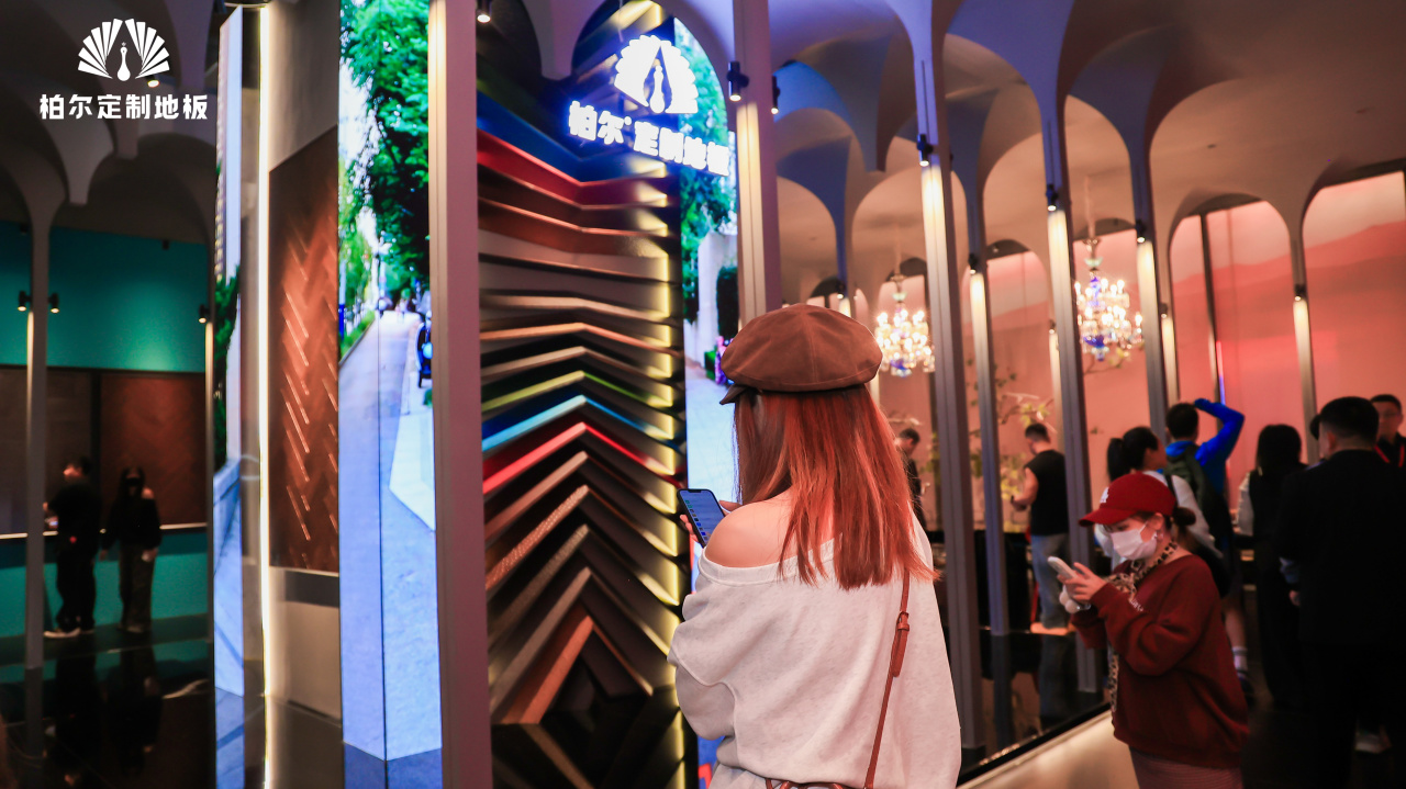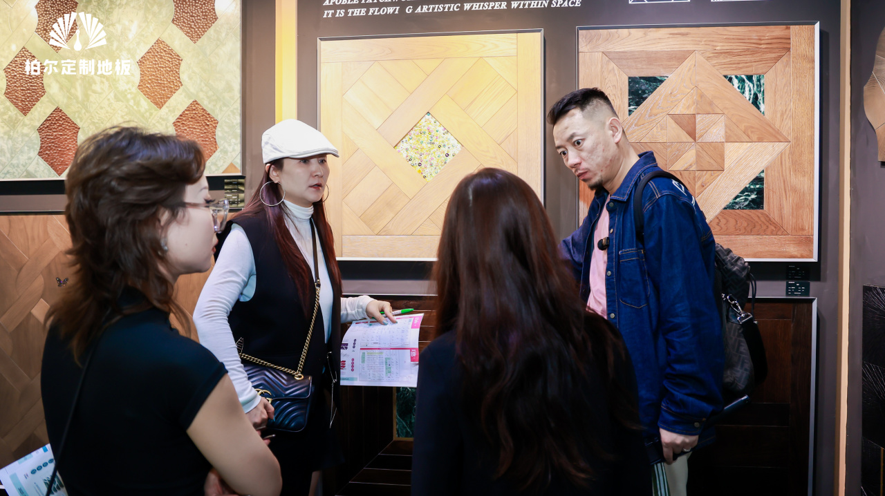 与之形成精准协同的安泊尔潮流展位,则以先锋美学为核心,通过多元设计语言与灵动色彩表达,精准契合当代年轻群体的高端审美需求。现场陈列的多款创意作品,将自然灵感与人文元素融入地板设计,成为年轻设计师捕捉潮流灵感、汲取创作养分的重要阵地。两大展位虽定位迥异、各有侧重,却形成了“技术筑基+设计赋能”的互补格局,从不同维度展现柏尔高端定制的综合实力,吸引了行业精英、设计师、高端业主等多元群体的高度关注。