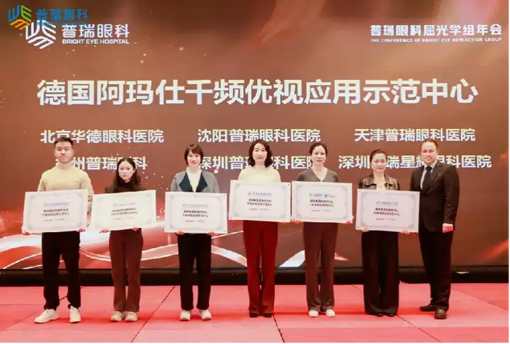 本次年会,北京华德眼科医院屈光中心亦获集团授予“德国阿玛仕迈可视老视应用示范中心” 与 “德国阿玛仕千频优视应用示范中心” ,彰显了我院在引进与应用前沿技术、推动精准屈光矫正服务方面的示范性地位。