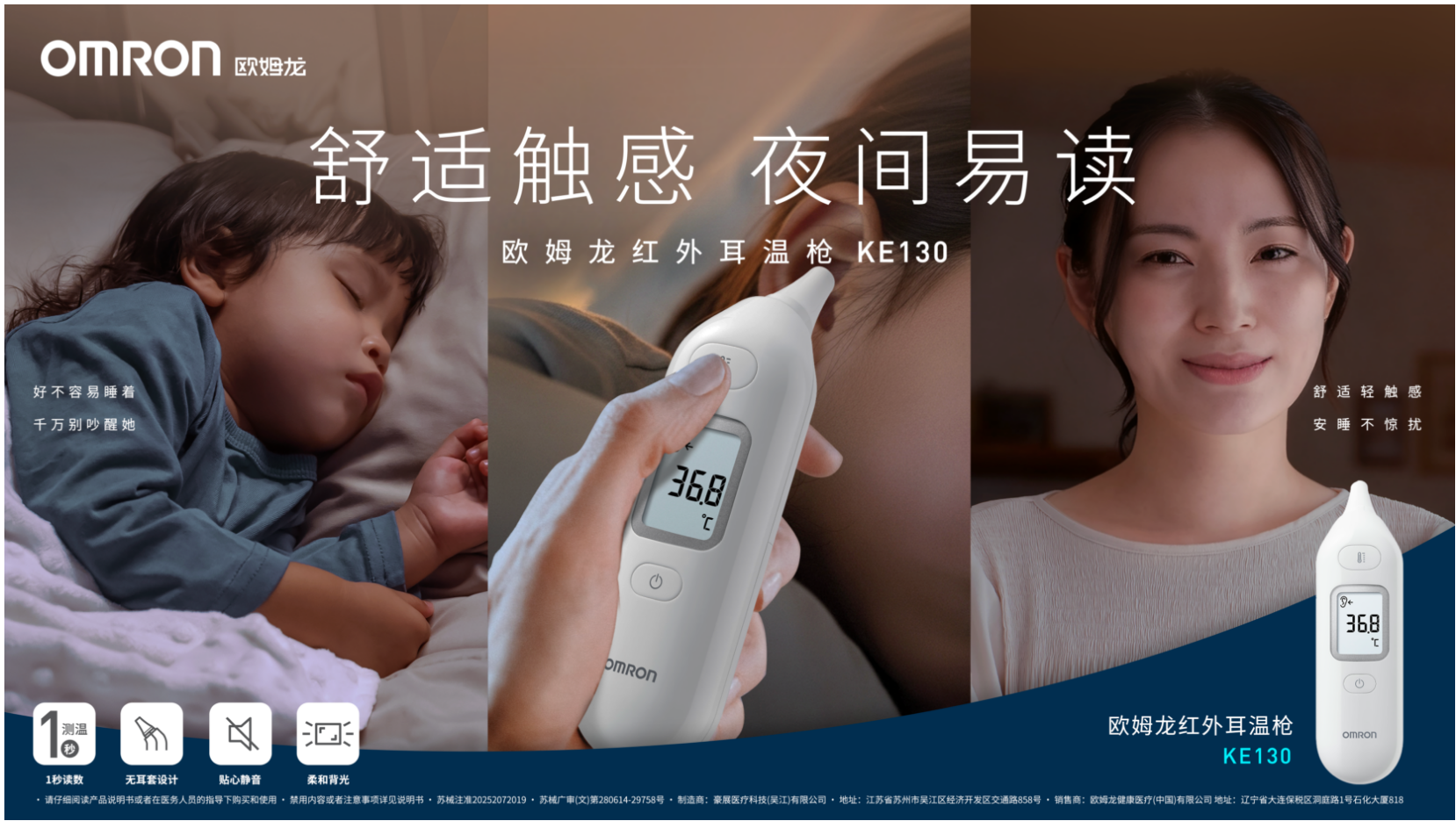 近日,欧姆龙健康医疗正式发布新品红外耳式体温计KE130,专为有儿童的家庭设计,力求让测温更快速、精准、轻松。KE130以“无耳套设计、一秒速测、静音操作”为核心亮点,解决了传统耳温计在测量效率、儿童配合度及使用流程上的常见痛点,进一步丰富了欧姆龙在体温管理领域的产品布局,体现了品牌持续深耕用户需求、推动健康管理体验升级的战略决心。