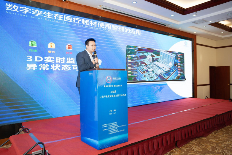 在活动中,集团总经理张俊豪系统展示了公司在医疗数字化领域的核心解决方案与产业布局,重点推介了融合重力感应、数字孪生等前沿技术的“医润通”医疗耗材精细化管理平台。