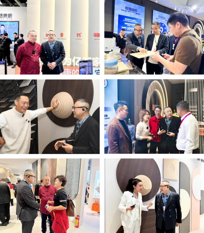展会期间,中国林产工业协会会长周鸿升等多位重量级嘉宾亲临热康板展位参观指导。在深入了解热康板的技术路径与应用场景后,行业领导对其坚持技术驱动、深耕健康赛道的战略给予了高度评价,并鼓励企业继续发挥标杆作用,推动中国板材行业向更高质量发展。