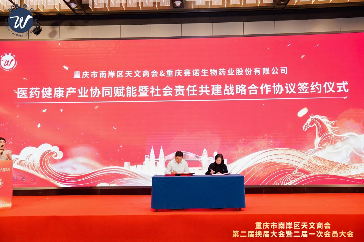 12月25日,重庆市南岸区天文商会第二届换届大会暨二届一次会员大会顺利召开,会议期间完成两项关键举措:与重庆赛诺生物药业股份有限公司、阿维塔科技(重庆)股份有限公司签署战略合作协议,同时正式揭牌成立医药产业联盟。此举精准对接南岸区产业集群化、高端化发展战略部署,聚焦医药健康、智能汽车两大主导产业,为天文街道乃至南岸区产业生态升级与经济高质量发展筑牢产业协作根基。