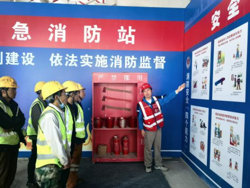 建立应急消防站,设置义务消防队。通过火灾事故案例分析和应急消防站实操讲解对义务消防队员、区域防火负责人、动火作业人员等进行专项消防安全教育培训,落实应急管控要求,模拟演练超高层火灾逃生要点。