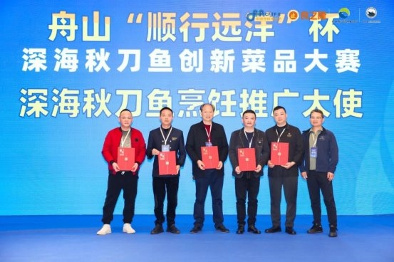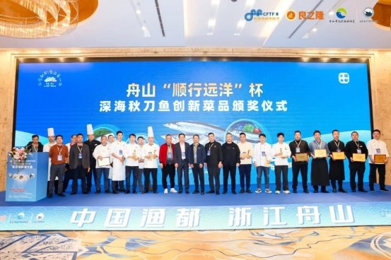 活动期间,为更好助力秋刀鱼国内大市场开发,主办方精心组织了舟山“顺行远洋”杯深海秋刀鱼创新菜品大赛,来自长沙日料、西餐及五星酒店的20名精英厨师参赛角逐,大显身手,融和湘菜香辣鲜美特色,现场烹制了40个秋刀鱼创新菜品,并作为长沙餐饮界五位名厨大咖的专家评委,现场点评,评出特金奖菜品1个,金奖菜品2个,银奖菜品一个,创新奖菜品14个,让与会嘉宾近距离、直观感受到了舟山海产品的鲜美风味与烹饪潜力,赞不绝口。同时,还举行了舟山远洋自捕海产品自助品鉴交流活动,现场不仅隆重举行了充满了渔文化气息的《大目金枪鱼开鱼秀》和《深海红鱿鱼解体秀》,而且提供辣子金枪鱼,金枪鱼鱼丸,辣炒金枪鱼、西芹鱿鱼花、香烤秋刀鱼、剁椒秋刀鱼等美味菜品分享。