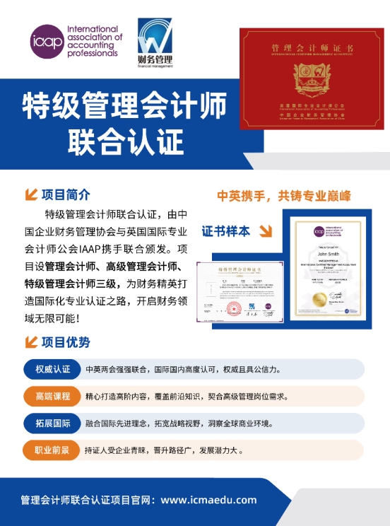 当前,全球经济格局深度调整,新一轮科技革命与产业变革加速演进,企业面临的市场环境日趋复杂。财务管理作为企业管理的核心环节,其重要性愈发凸显。为了适应新时代经济发展的需求,培养具有国际视野和战略思维的高级财务管理人才,中国企业财务管理协会与英国国际专业会计师公会IAAP携手推出了特级管理会计师联合认证项目,这一项目为我国管理会计领域注入了新的活力,也为企业的高质量发展提供了有力的人才支撑。