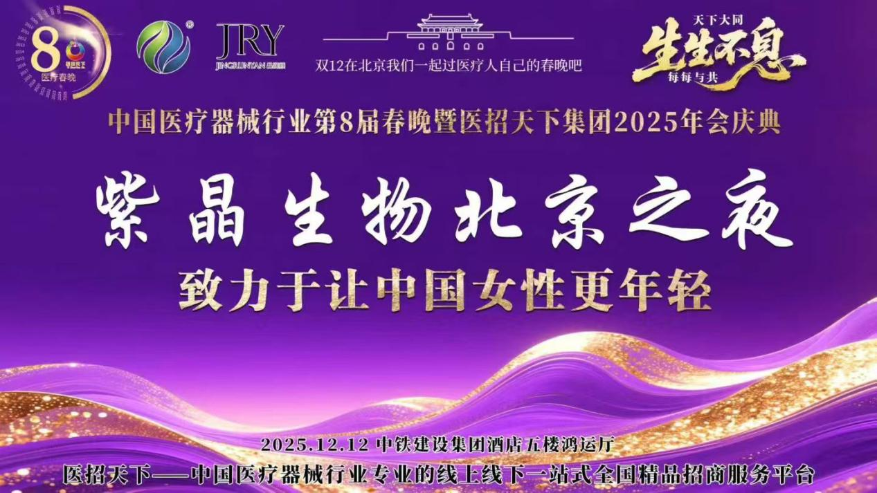 2025年12月12日,中国医疗器械行业第八届春晚暨医招天下2025年度庆典在庄严的国歌声中拉开帷幕作为行业代表企业,紫晶生物董事长贺旋在大会晚宴上致欢迎词他强...