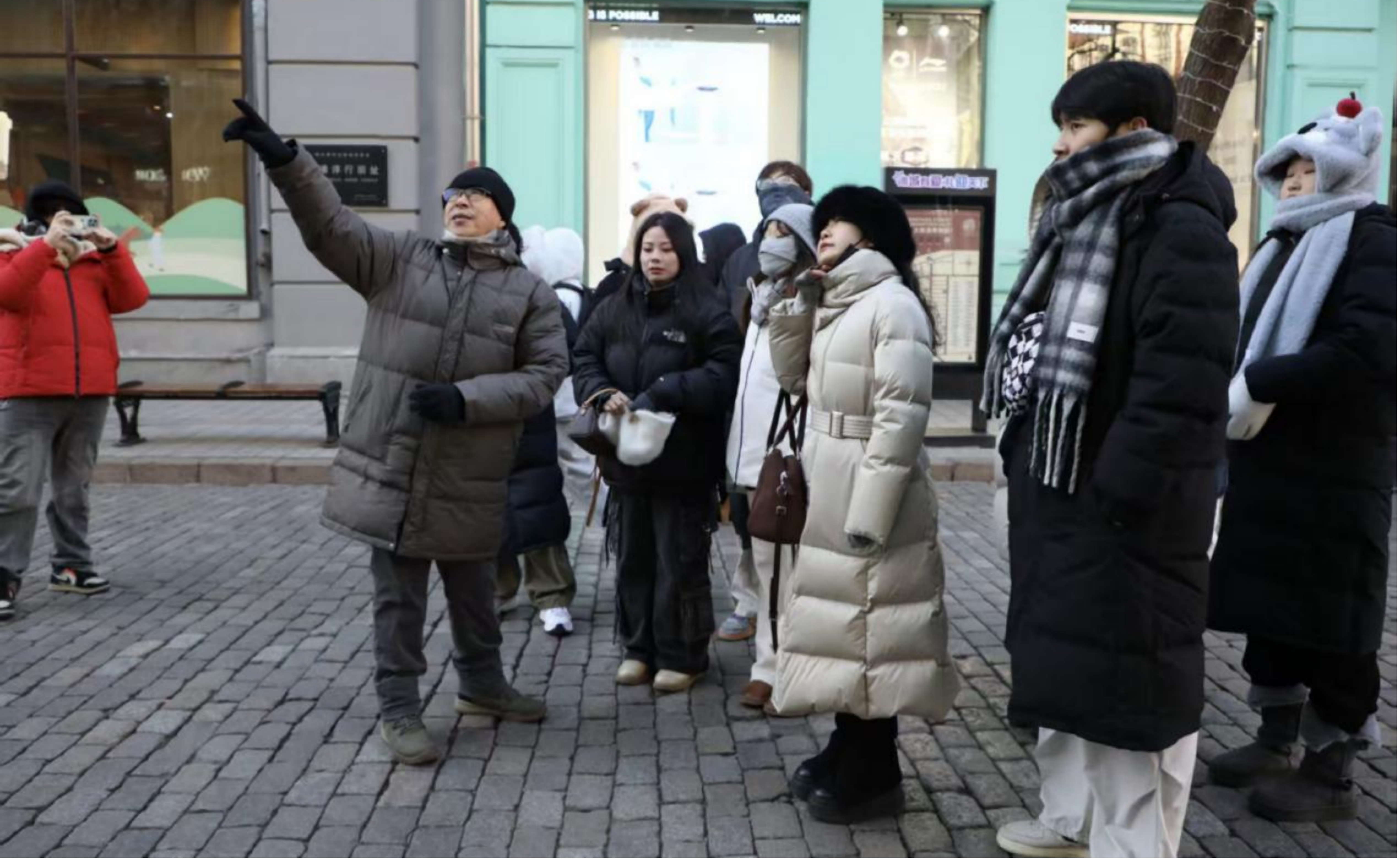 在中央大街,原哈尔滨市博物馆建筑艺术馆展览科长、哈尔滨历史文化研究会理事李凤利,围绕街区百年历史文脉、欧式特色建筑风貌等展开细致讲解,让师生们从实景中触摸寒地文化的鲜活肌理,进一步深化了对冰雪文化与地域特色融合的认知,为后续 AIGC 影像创作积累了鲜活素材。