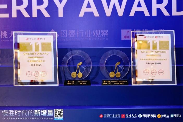 在备受瞩目的樱桃大赏颁奖典礼上,全球维生素D销量领先品牌Ddrops滴卓思,凭借卓越的产品品质与对长期主义的坚守,再度脱颖而出,成功揽获“年度婴童营养品品牌杰出表现大奖”,旗下经典产品Ddrops滴卓思D3亦荣膺“年度爆款产品大奖”。在行业迈向“减量精耕”新周期的背景下,Ddrops滴卓思以科学的严谨、配方的纯粹与不变的初心,生动诠释了何为穿越周期的品牌核心价值。
