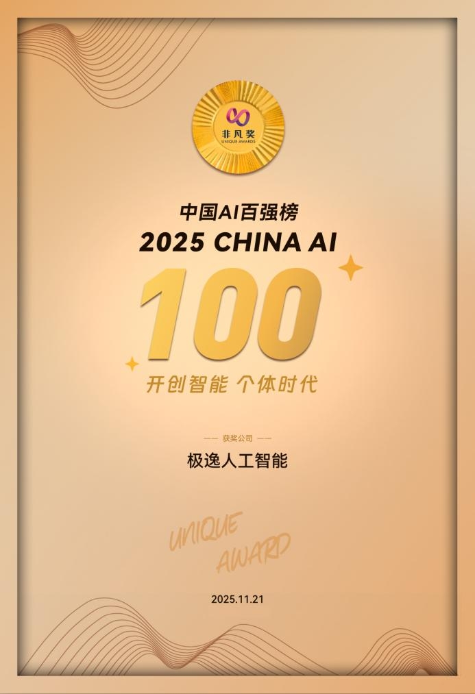 2025年11月21日,杭州极逸人工智能凭借其在AI技术与游戏产业深度融合方面的卓越表现,以及在产品创新力与商业前景上的巨大潜力,成功入选非凡产研2025年度“CHINA AI 100”(中国AI百强榜)。这一荣誉不仅彰显了极逸人工智能作为AI游戏产业佼佼者的实力,也印证了其核心产品——一站式AI游戏创作平台SOON及其全球首款AI游戏数值引擎SOON Fx上所展现出的卓越产品创新力与巨大商业前景。