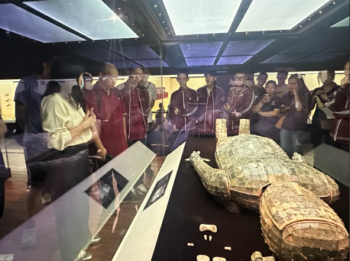 当课堂的坐标移向博物馆,历史便不再是玻璃展柜里的标本,而成为可以触摸的“此刻”。2023年九月十日,国际部高一师生及家长走进河北博物院。河博老师带领同学们驻足“大汉绝唱——满城汉墓”展厅,金缕玉衣的奢华与长信宫灯的环保设计让少年们同时看见西汉的审美与科技;而他们的任务,是把这些看见转化为“讲好石家庄故事”的叙事。于是,古中山国的车马器、错金银铜版、山形铜器,被少年们用英文重新命名、重新讲述,成为向世界递出的“河北名片”。课堂在此完成第二次变形:从“接受”到“输出”,从“本土”到“国际”,文物与诗句一同获得飞向十七国的签证。
