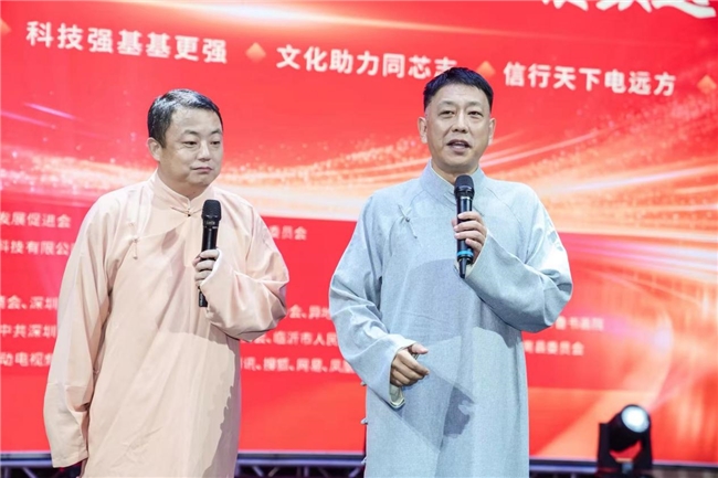 大会由山东省临沂市政协委员、日照市政协委员、山东商会电子信息专业委员会主任、沂蒙文化发展促进会会长、深圳市鲁光电子科技有限公司董事长朱礼贵先生主持。原深圳市政协副主席程科伟,中共深圳市委政法委原巡视员、深圳市反邪教协会会长张东生,深圳市东华集团董事长、深圳市山东商会会长岳智飞,深圳市文创体育类社会联合党委第一书记、原深圳市文化广电旅游体育局副局长杨素娴,临沂市人民政府驻广东联络处主任、驻粤流动党员党委书记赵雷,临沂市莒南县委常委、宣传部部长张华,中共深圳市青年社会组织委员会书记王东升,深圳市宝安区企业服务中心党组书记、主任杨海栋,南方科技大学深港微电子学院教授、深圳大学客座教授、深圳市地方级领军人才、正高级工程师、深圳市半导体行业协会荣誉会长周生明,北京大学深圳研究院6G与人工智能课题组组长、博士后导师、北京大学深圳研究院运动控制研究室副主任、广东省前沿科技研究院院长 胡国庆,临沂市在深挂职实训干部及各区县在深联络处相关负责同志,深圳市山东商会执行会长、秘书长、商会副会长代表,深圳市山东16地市商会会长、秘书长,深圳市新一代信息技术行业协会会长、深圳市济南商会会长毕永涛,全国省市山东商会会长代表,深圳市异地商会会长、秘书长代表,深圳市异地高校校友会会长代表,全国临商联盟,中国微马跑步协会代表,深圳市计算机行业协会,深圳市无线电技术行业协会,半导体行业协会,智能装备协会,人工智能行业协会,双转协会,新质生产力协会,芯片行业协会,虚拟现实联合会,微波通信行业协会,机器人行业协会,工业设计协会,电子竞技行业协会,金融协会,律师协会,文旅协会,文化协会,长青诗社等50余家行业协会的会长、秘书长们,深圳市各大高校研究院、华友会、富友会、IC湘会、大佳源供应链、电子供应链界的精英代表,深圳市山东电子专委的专家团成员、团长印宁华,全国友谊旅游文艺协会主席、香港导游总工会理事、香港青岛同乡联谊会文旅分会副会长、青岛海外联谊会理事、香港新疆总商会名誉会长、万通集团业务发展总监,张春辉女士等专业人士及社会各界人士出席年会并作了发言。临沂市人民政府驻广东联络处主任、驻粤流动党员党委书记赵雷在致辞中,首先对年会的举办表示热烈祝贺,向关心支持临沂发展的各界人士表示衷心感谢,并着重对临沂基本情况、营商环境和沂蒙精神展(大湾区)进行路演推介,系统地展现沂蒙老区波澜壮阔的革命征程、可歌可泣的英雄史诗以及新时代沂蒙地区的卓越发展成就,成为红色文化传承阵地、党性教育基地、“双招双引”高地和城市会客厅。中共莒南县委常委、宣传部张华部长的家乡推介,内容详实,令人向往,同时也进一步诠释了沂蒙精神的深刻内涵以及沂蒙精神在新时代经济发展大潮中的巨大感召力与深远影响。深圳市曲艺家协会副主席、盐田区曲艺家协会主席、沂水县驻粤流动党委副书记牛纪远与滕刚同志的相声《我是山东人》、临沂市政协委员、央视全国“最佳才艺奖”中国爱心使者、山东省齐鲁文化之星苗雨的《家住临沂》《奔向中国梦》,亚洲旅游音乐金曲榜最佳男歌手、广东省岭南音乐年度最佳男歌手王如华的《这就是信仰》、歌曲大串烧等歌曲,获得了大家热烈的掌声,掀起了晚会一个又一个的高潮。