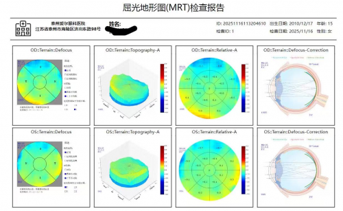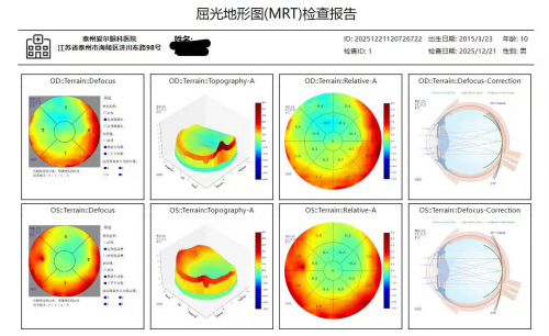 真正的近视防控,始于精准检测。泰州爱尔眼科医院独有的屈光地形图(MRT)设备,彻底打破了传统验光的局限——它能在自然状态下,快速采集视网膜各位置的离焦状态,精准捕捉离焦数据、高阶像差等关键指标,预测患者近视和眼轴的增长趋势,让眼球的细微异常无所遁形,尽可能精准的把患儿眼部情况与塑形镜、功能镜品牌完美匹配,发挥出最佳的控制效果,再结合科室学科带头人卢新华主任的一对一视功能深度分析,能从根源找到度数增长的核心原因,提供更合理的个性化治疗方案,避免盲目配镜带来的风险。