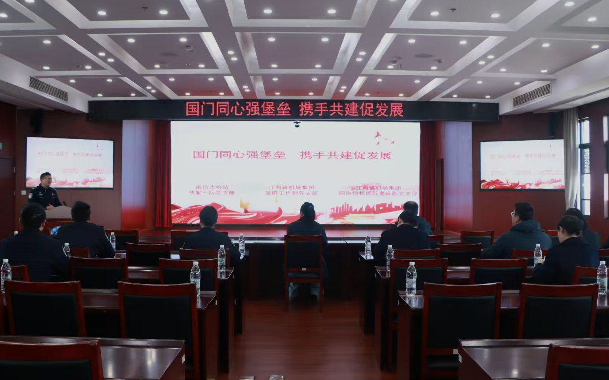 为深入学习贯彻党的二十届四中全会精神和中央经济工作会议精神,强化党建引领作用,凝聚国门口岸党建合力,12月19日,南昌边检站执勤一队党支部与江西省机场集团党群工作部党支部、国内值机国际客运部党支部联合开展 “国门同心强堡垒,携手共建促发展” 主题党日活动。