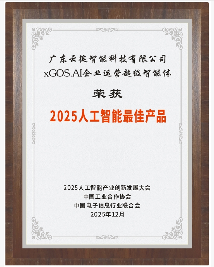 云徙科技以在推动人工智能技术,特别是大模型与企业运营深度结合方面的突出表现,成功获评为“2025人工智能独角兽企业”。这一荣誉不仅是对云徙科技技术创新能力的认可,更是对其市场潜力和行业影响力的肯定。与此同时,公司自主研发并申报的“xGOS.AI企业运营超级智能体”解决方案,凭借在赋能企业智能化运营、提升商业效率方面的显著成效,从众多参评产品中脱颖而出,获选“2025人工智能最佳产品”称号。