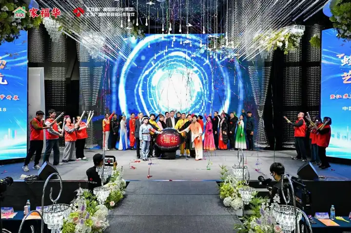现场通过家福华21周年宣传片,生动展现了企业从“造房子”到“创生活”、从“企业”到“家园”的温暖足迹与成长篇章。随后,活动迎来重要时刻——家福华与江苏广播电视总台文艺频率携手共建的首届“百姓文化艺术节”正式启动。嘉宾共同启动装置,在倒数声中点亮艺术节征程,标志着文化生活与百姓日常深度融合的新平台就此展开。