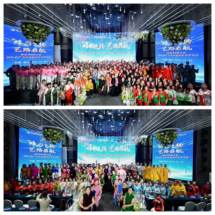 2025年12月18日,家福华成立21周年庆暨江苏广播电视总台(集团)文艺频率首届文化艺术节在历史名城镇江隆重启幕。活动以“蜂彩飞扬 艺路启航”为主题,在镇江金山壹号邮轮一号大厅举办,呈现了一场融合企业庆典与百姓艺术的文化盛宴,如同本次活动主题,在家福华的带领下,牵手公众媒体,让艺术的风帆在长江畔盛大启航。来自社会各界的领导、嘉宾及家福华家人齐聚一堂,共同见证这一温暖而充满艺术气息的时刻。