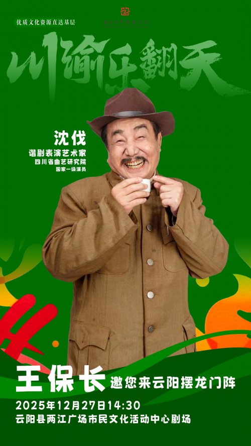 本次活动将作为2025年度“川渝乐翻天”系列展演的压轴场次,以一台汇聚名家、联动城乡的综合性演出,为本年度川渝文化交流画上隆重而圆满的句号。让我们相约12月27日,走进云阳县市民文化活动中心,在欢笑中感受巴蜀文化的魅力,见证川渝故事的艺术绽放。