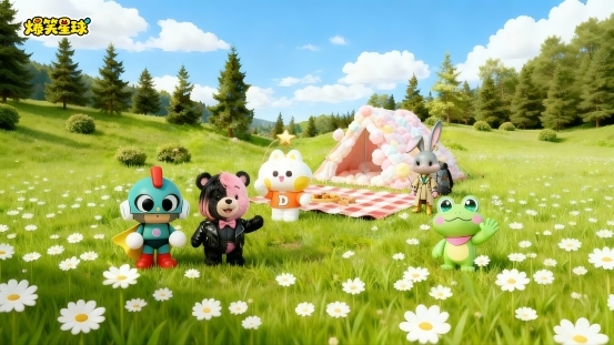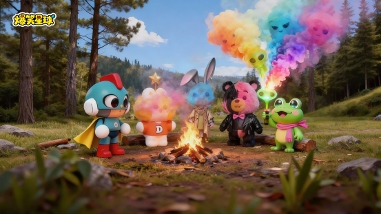 叮当猫的“自动搭帐篷机”启动后,将帐篷搭成“棉花糖造型”,还将阿尔一百卷入其中,机器提示“治愈系露营,主打沉浸式包裹”;大眼蛙捡拾柴火时,发现“会发光的外星绿植”,点燃后冒出彩色烟雾,将众人的脸熏得五颜六色,她急喊:“这不是环保烟雾,而是‘毁容烟雾’!”。