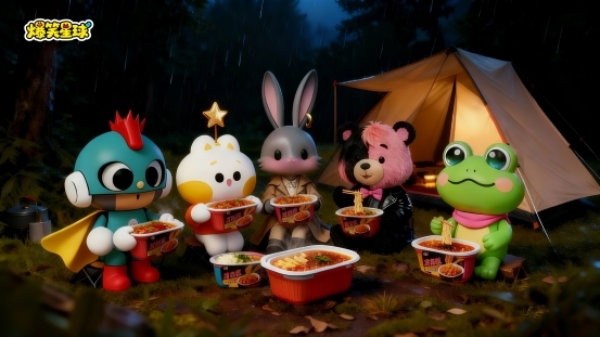 夜晚下雨,叮当猫用温暖天线启动“防雨模式”,却将雨水变成“泡泡雨”,五人在泡泡中享用自热火锅,啾啾熊拍摄“露营名场面”,配文“乌龙露营才是真快乐”。