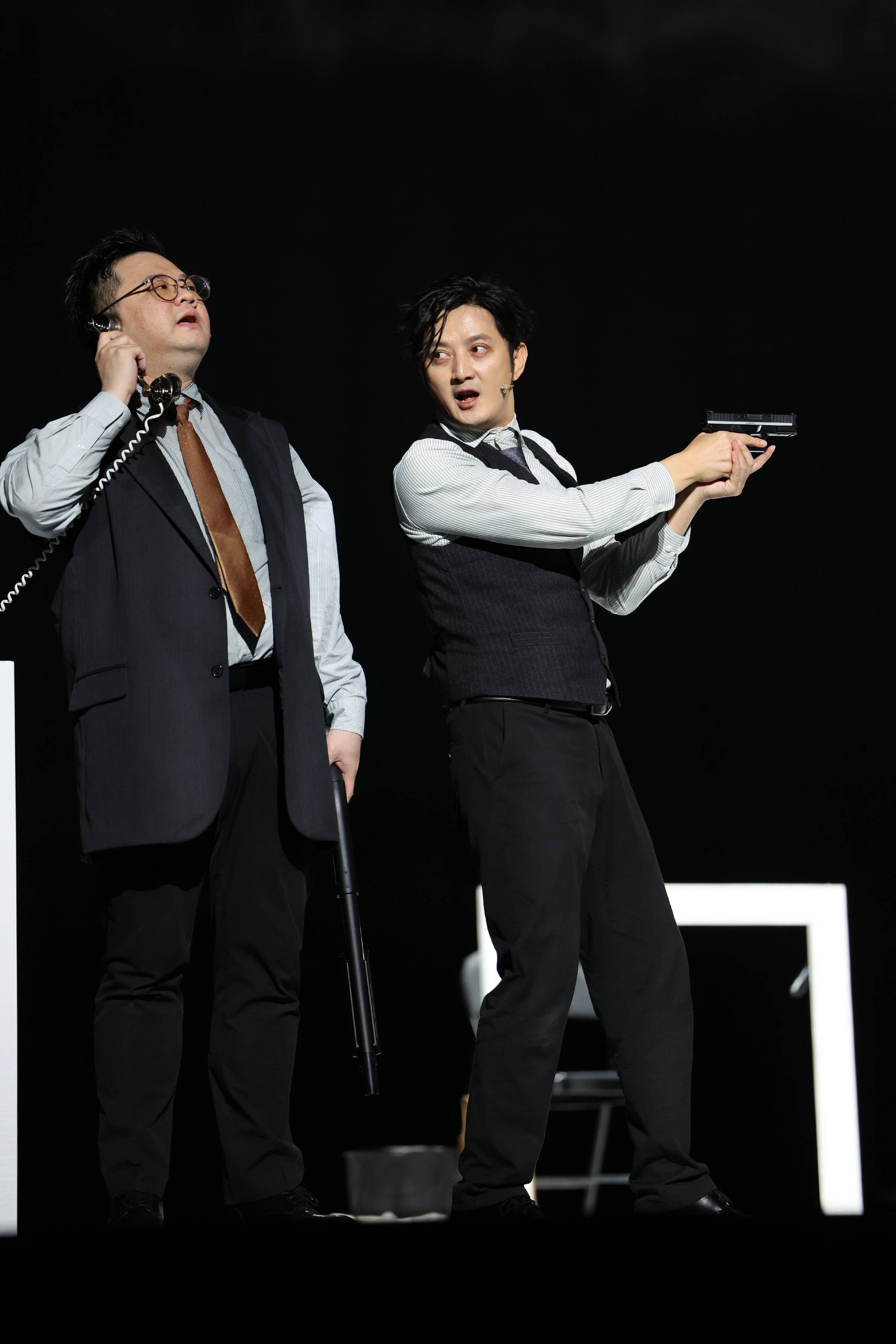 舞台上,钮宝平塑造的汉克斯是一个典型的“妻管严”——既要挣钱养家,又要照顾妻子,家中大大小小的事情全由他操心。而他的妻子,则是一个对家庭事务几乎“什么都不管”的女人。汉克斯远不止是一个喜剧标签,他是剧中“沉默的大多数”的缩影。其性格底色是唯唯诺诺与委曲求全——怕老婆、惧权威,是在工作中习惯顺从、在生活中背负压力的典型小人物。钮宝平深刻理解到,这个角色的核心是被生活“打劫”的荒诞与辛酸。即使在劫匪枪口下,他依然无法摆脱日常的桎梏,这种强烈的反差正是角色震撼力的来源。