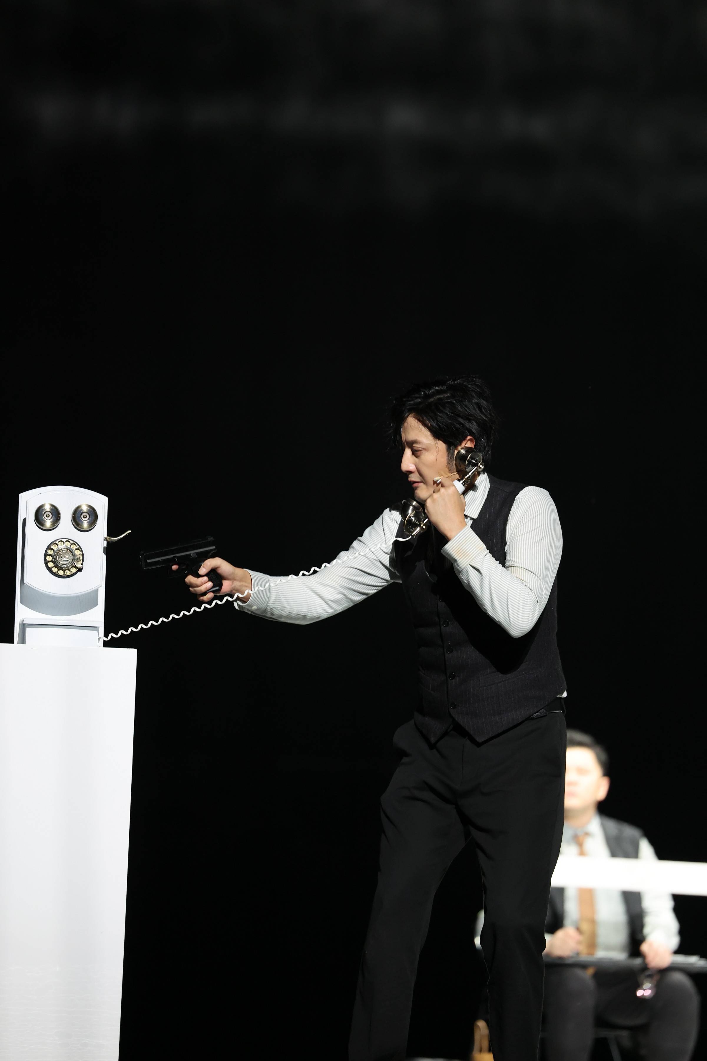 在排练和表演中,钮宝平不断揣摩这个角色的心理状态。他不仅要表现出汉克斯在外工作的压力,还要展现回家后对妻子的包容与无奈。钮宝平通过精准的细节刻画,让角色从“隐忍”到“爆发”的蜕变极具说服力。在角色的压抑期,他以微弓的脊背、攥紧的双手、闪躲的眼神和略带颤抖的语气,立住了一个长期处于弱势的老职员形象。尤其是在接听妻子电话的经典桥段中,他全程压低音量、频频附和,将婚姻中的被动与隐忍传递得淋漓尽致。而当剧情推向高潮,汉克斯长期积压的情绪爆发时,钮宝平的表演则呈现出惊人的反差——他挺直脊背,眼神锐利,呐喊中带着哭腔与颤抖,让观众在荒诞中瞥见一个小人物的尊严觉醒。这种平凡中的不平凡,是钮宝平对角色的深刻理解,通过极具层次的表演展现了这个普通男人在压力之下的坚持、温柔与内在力量。