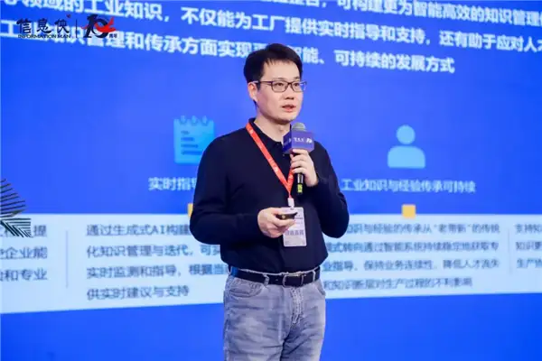 山河智能装备股份有限公司流程信息化本部部长龙贞先生分享了企业数字化应用情况,提及公司以工程、航空、特种装备三线发展,海外布局扩张,且斩获多项智能工厂类荣誉。其数字化建设以精益生产为基础,遵循 “五个环节、六个维度” 定位,实现产品数字化、单机及集群智能化迭代,推出协同解决方案。研发上搭建125平台,应用 AI 优化生产流程,落地数字孪生、机器视觉等技术;服务端打造151体系,借大模型实现主动预测性服务。未来公司将以业务牵头、IT 赋能的模式,通过双循环推进 AI 能力建设,聚焦四大大模型应用方向,并强调离散型制造业数字化转型需长期投入与高层推动。