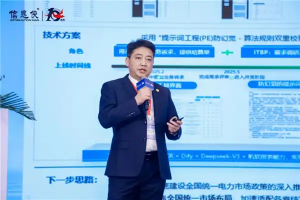 正泰新能源开发有限公司信息管理部总经理王伟先生围绕企业 AI 应用实践展开,指出当前 AI 工具散乱、适配成本存疑的痛点,但强调 AI 是数字化转型必答题。王伟先生分享了三个已落地的低成本、易上手、可复制的 AI 场景:光伏电站电费结算,借助 AI 将单份结算单整理、核对时间大幅压缩,节省大量工时;储能逆变器出海业务的多语言翻译,通过 AI 智能体缩短周期并节省超80%外包费用;设备维保领域,AI 实现 “故障一报、方案即到”,压缩故障处理时间与人员培养周期。此外,还总结了 AI 应用的感悟,包括聚焦业务痛点、做好数据治理、小步快跑推进,以及业务、ITBP、技术人员组成的 “铁三角” 角色和四层落地架构等。
