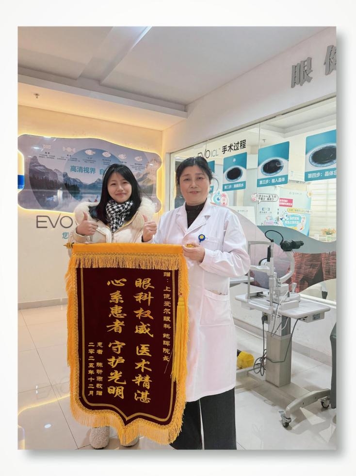 近日,上饶爱尔眼科医院上演温馨一幕:陈女士在ICL晶体植入术后一个月,将一面绣有“眼科权威 医生精准 心系患者 守护光明”的锦旗赠予院长鲍晖。她激动地表示:“从取景器到现实世界,我终于能无缝捕捉每一帧清晰画面,这才是摄影师该有的‘视’界!