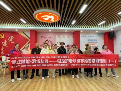 近日,成都市双流区东升街道龙桥社区“银龙护老志愿者联盟”系列主题活动正式启动。活动以“银龙暖夕阳·志愿伴同行”为宗旨,通过整合社区资源、培育志愿力量,着力构建可持续、互助式的社区养老服务新机制。