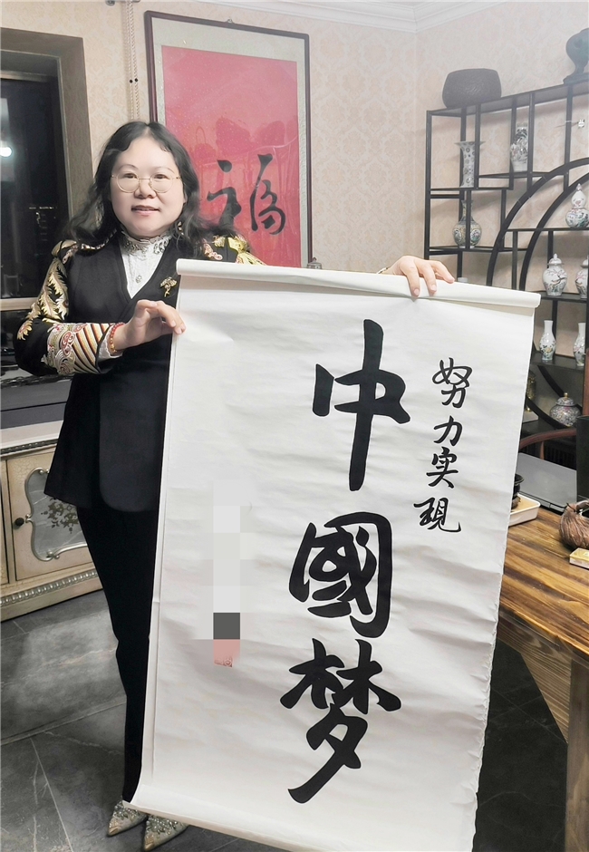 12月27日,杨晓琴受邀来到北京朋友的工作室,题写的书法“努力实现中国梦”映入眼帘时,她内心犹如波澜壮阔的海洋,澎湃不已。这份殊荣,不仅是对我个人的莫大激励,更如一座灯塔,照亮了杨晓琴在大文化传播道路上奋勇前行的方向。