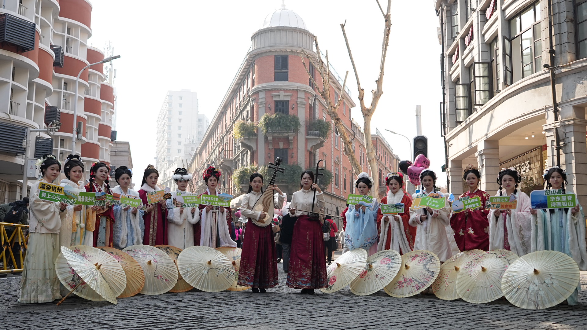 活动当天,“江畔映古装·饶韵融汉风”街头快闪在武汉黄鹤楼公园红墙、黎黄陂路巴公房子及江汉路步行街先后开展。来自上饶各地身着汉服的文化使者翩然现身,通过器乐演奏、巡游展示等形式,与市民游客互动,并赠送文创礼品,文化使者手持“三清天下秀”“中国最美乡村”等手举牌,如流动的风景画,吸引无数市民游客驻足流连、合影互动。最终一声齐整而热情的“大美上饶,自在山水,欢迎您!”,将来自江西上饶的诚挚邀约,深深印入武汉人民的城市记忆。