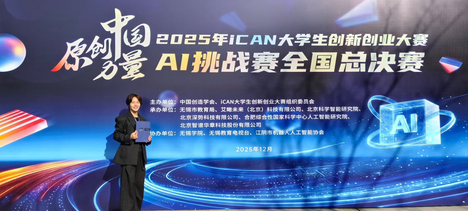 2025年12月28日星期日,iCAN大赛爱奇艺AIGC短视频挑战赛全国总决赛在无锡学院落下帷幕图1 龙睿健的短片作品《屏间寒刺 法中寻光》作为列入全国普通高校...